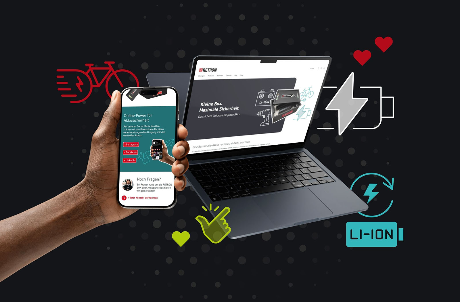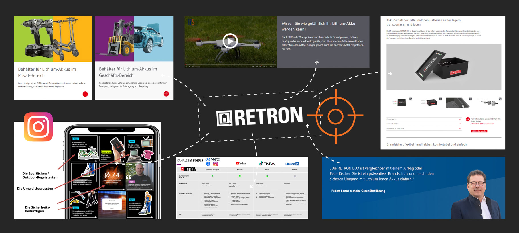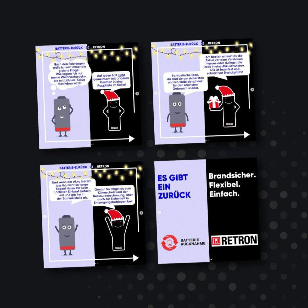 RETRON kam mit einem klaren Ziel: Sicherheit rund um Lithium-Akkus greifbar machen – für Verbraucher*innen und Unternehmen. Unsere Aufgabe war es, Sichtbarkeit zu schaffen, Wissen zu vermitteln und einen digitalen Auftritt zu entwickeln, der informiert, überzeugt und verkauft.